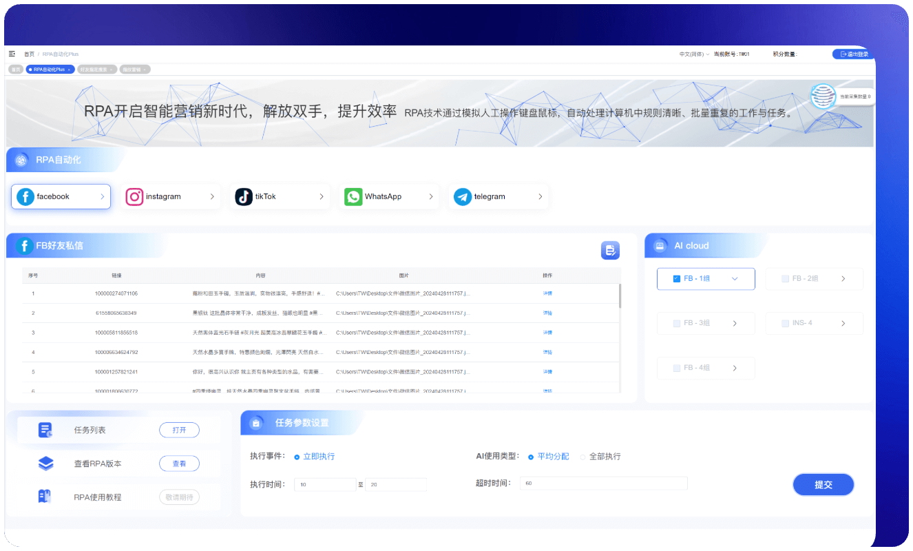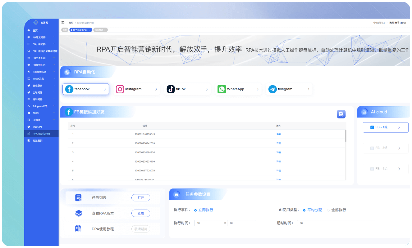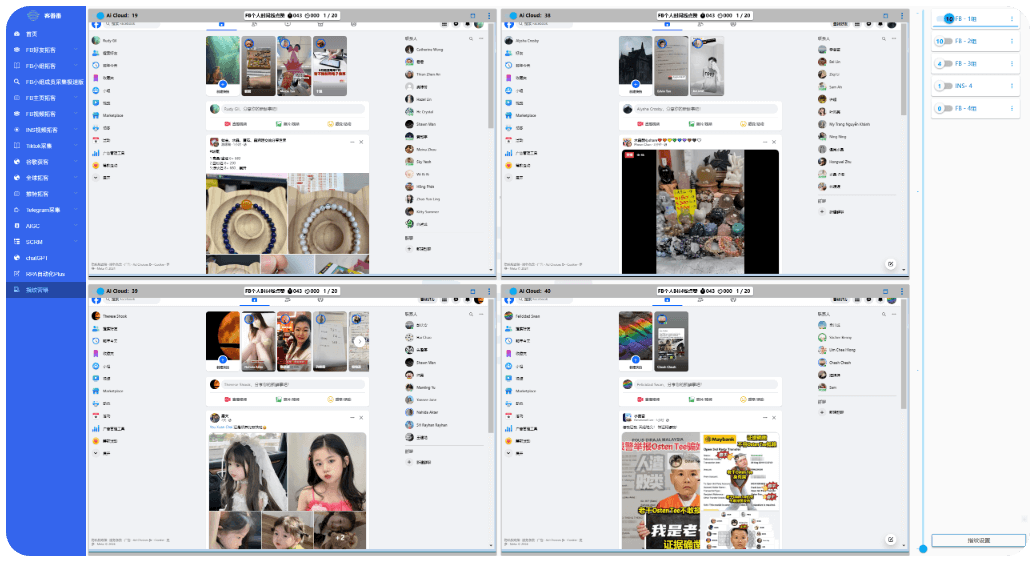 深度打通营销场景,小组帖子、公共主页、评论区多场景高效互动,多账号自动点赞、评论、评论区回复,实现全自动化养号