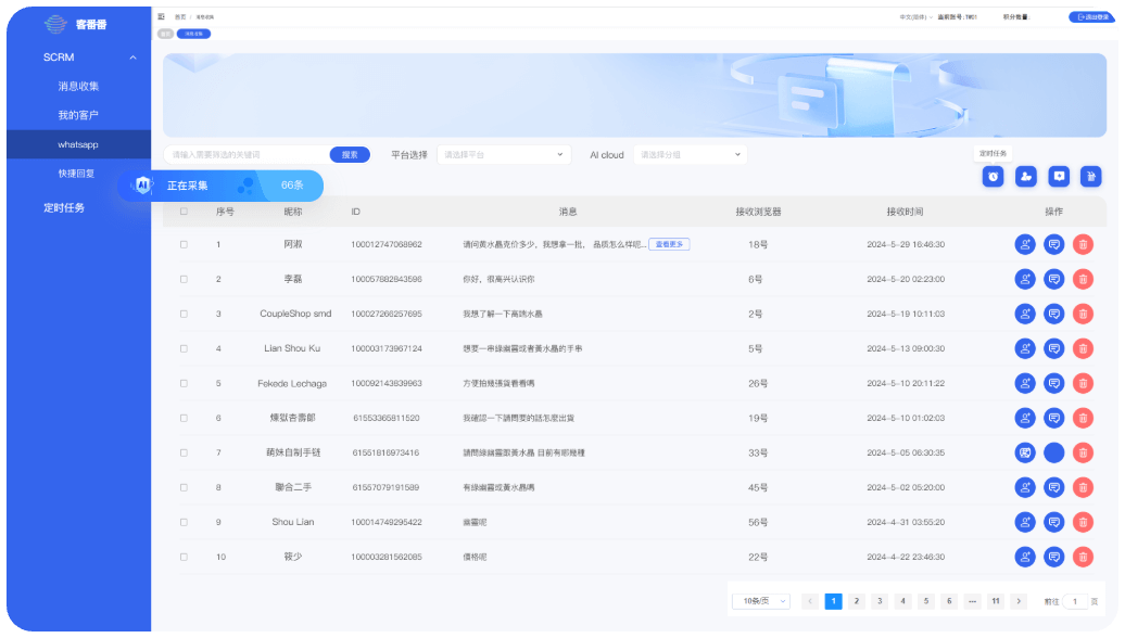 大数据采集、营销触客一键定时设置,客户消息自动收集,统一管理,AI快捷回复,轻松实现全天候营销获客